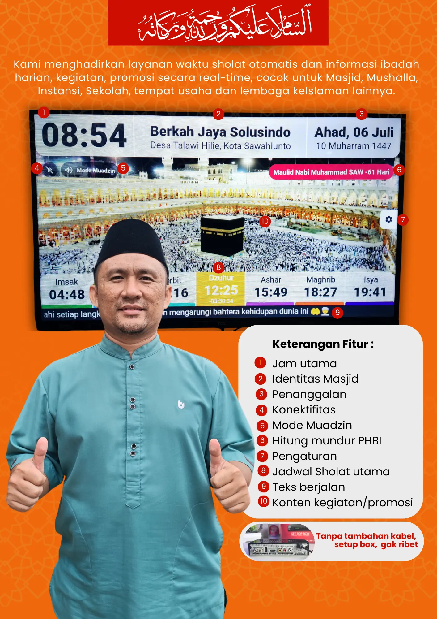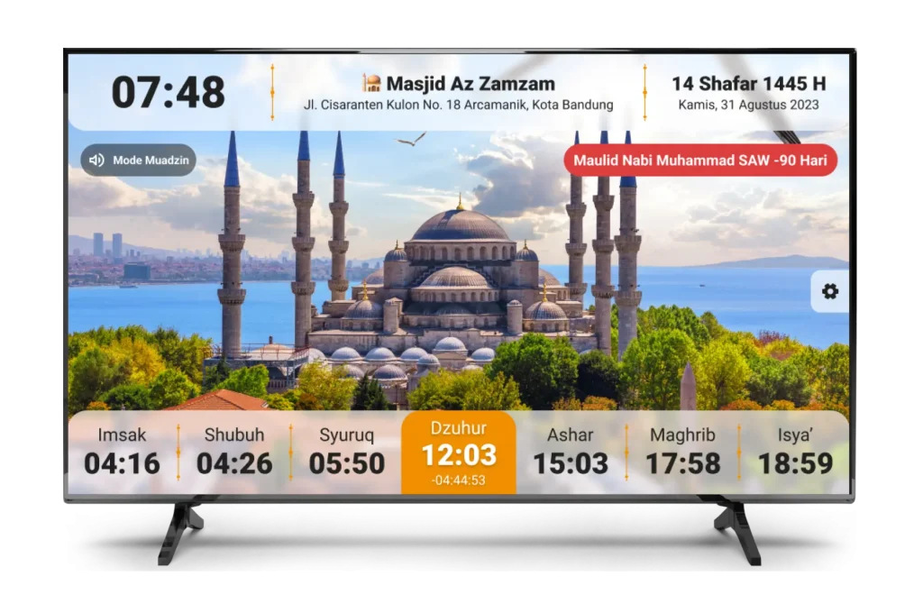 Jadikan Masjid Kita semakin modern dan interaktif dengan Jam Adzan TV — hadir dengan fitur lengkap dan informasi yang akurat
